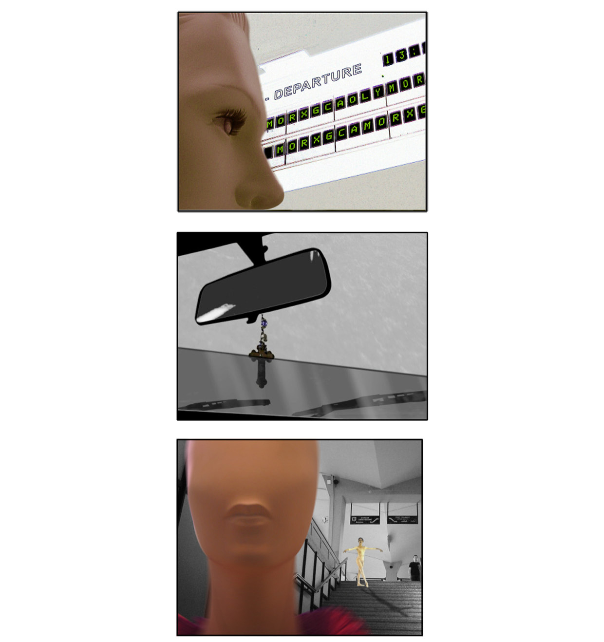 Σε ένα ψηφιακό περιβάλλον, χωρίς προοπτική, n συνεχής αλλαγή επιπέδων και n αλλεπάλληλη διαστρωμάτωση video εντείνουν την παραδοξότητα της σχέσης μεταξύ αντικειμένου-υποκειμένου. To αντικείμενο-γυάλα γίνεται μέσο προβολής διαστρεβλωμένων εικόνων και προσδοκιών, εγκλωβίζοντας τελικά τους ήρωες μέσα σε αυτό.