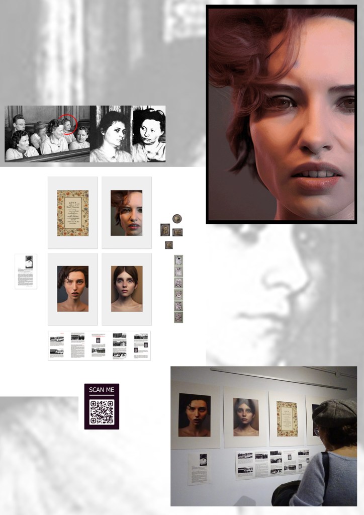 Οι τελευταίες δηλώσεις της Jenny-Wanda Barkmann και του Friedrich Schubert στάθηκαν η αφορμή και η προβληματική του έργου. Πειραματιστήκαμε με τα συστήματα μηχανικής μάθησης της τεχνητής νοημοσύνης A.I. βάζοντας τα τελευταία τους λόγια σε πρόγραμμα AI text tο Image Generator για τη δημιουργία συνθετικών εικόνων βάσει αυτών των δηλώσεων. Η χρήση της τεχνητής νοημοσύνης στόχο είχε να διερευνηθεί κατά πόσο αυτή είναι ικανή κατανοήσει τις λέξεις και το νόημα των προτάσεων τους και να τις μετατρέψει σε ένα υβριδικό πορτραίτο.
