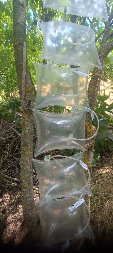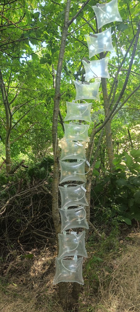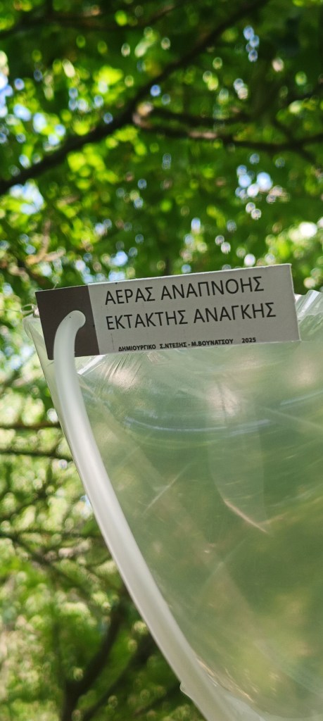 Εφήμερη εγκατάσταση από ανακυκλώσιμους πλαστικούς ασκούς, γεμάτους καθαρό αέρα ως συσκευές σωτήριας ανάσας. Όταν μια τελευταία αναπνοή καθίσταται ανεκτίμητη και μη δεδομένη τότε η σχέση μας με τη φύση και την τεχνολογία χρήζει επαναπροσδιορισμού.